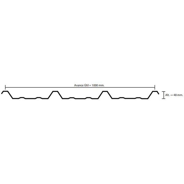 Plancha trapezoidal empleada generalmente para revestimientos y cubierta de naves industriales. Gracias a sus nervios rigidizantes es capaz de soportar cargas entre costaneras. Cuenta con terminaciones en zinc-alum y prepintado. Presentación cubiertas curvas. También disponibles en planchas traslucidas  para soluciones de luminosidad de galpones. Ancho útil 1.000mm, disponible en espesores 0,35mm; 0,4mm; 0,5mm y 0,6mm. Largos desde 0,5m a 18m solo limitados por condiciones de transporte.